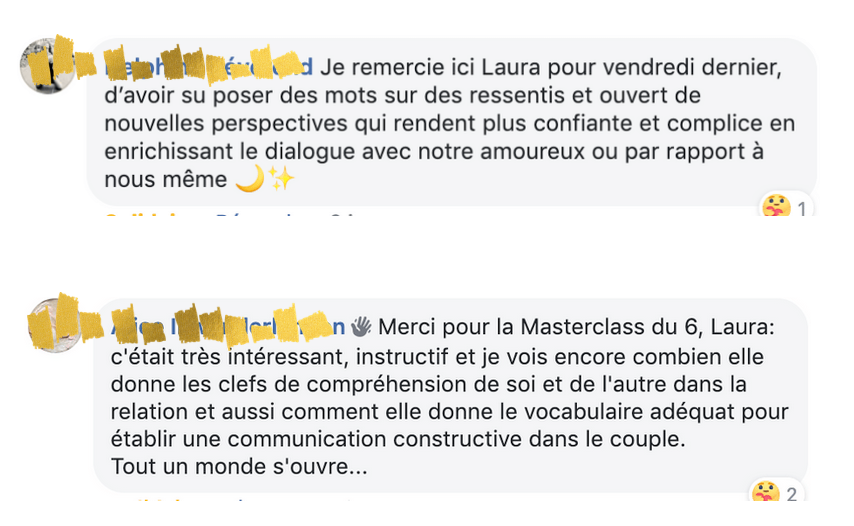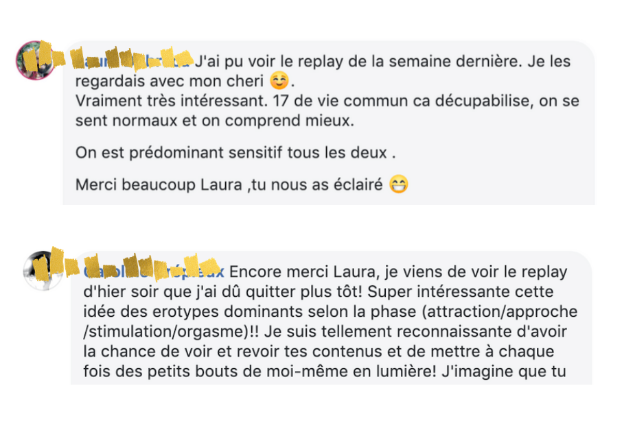 Si tu as assisté aux 4 ateliers, fait les exercices et que votre intimité n'a pas changé, ou si tu te dis en cours de route que ce n'est pas pour toi, nous te remboursons.